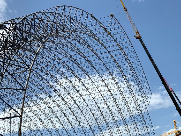 (2)网架加工前应对现场尺寸进行复测,确认无误后方可进行加工、安装;网架制作、运输、安装应遵守《空间网格结构技术规程》JGJ7-2010、《钢网架吉首螺栓球节点》JG/T 10-2009、《钢网架吉首螺栓球节点用高强度螺栓》 GB/T 16939-2016、《吉首钢结构吉首工程吉首施工规范》 GB50755-2012、《吉首钢结构吉首工程施工质量验收标准》 GB50205-2020。